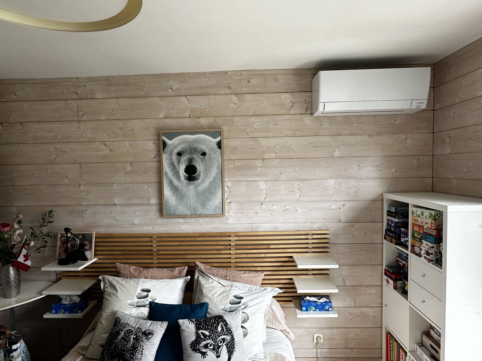 Autre inconvénient, le bruit ! Vous le savez, les pompes à chaleur air-air font du bruit lorsque la ventilation est active. C’est pour cela que la marque avec laquelle nous travaillons, Mitsubishi, fait de gros efforts pour limiter les décibels, principalement sur les unités présentes dans les chambres. Les splits que nous avons sélectionnés pour les chambres sont très silencieux et peuvent descendre à 18 décibels ce qui avoisine l’inaudible. Nos clients et leurs enfants pourront donc dormir dans un grand confort thermique et auditif.