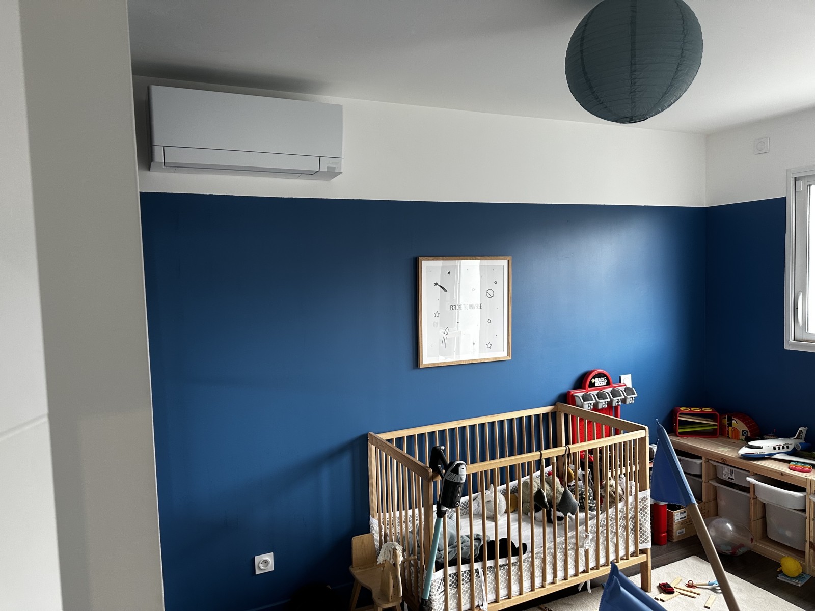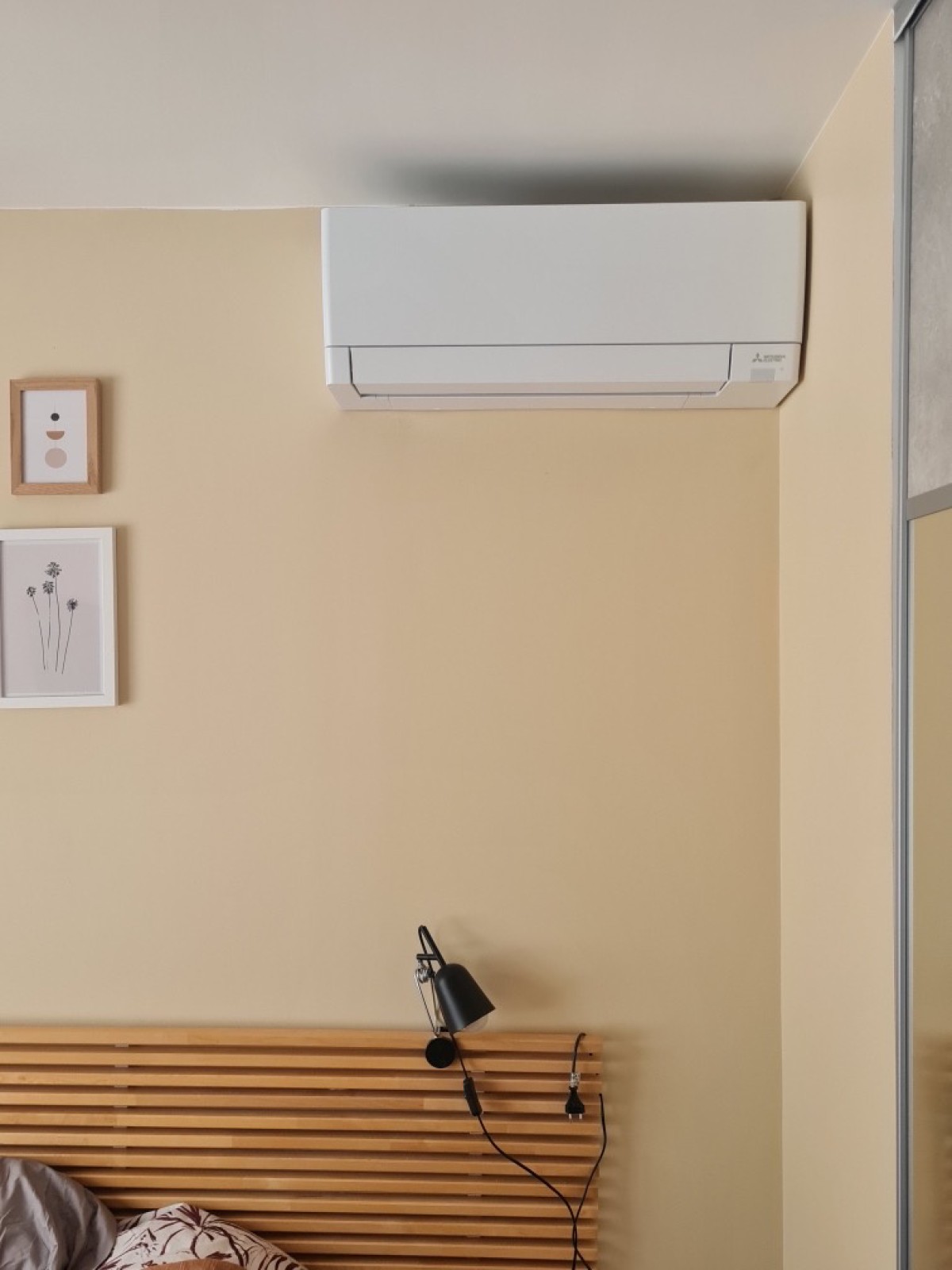 Pour les chambres, le modèle compact de Mitsubishi était le plus pertinent grace à ses décibels de ventilation très faible (18db).